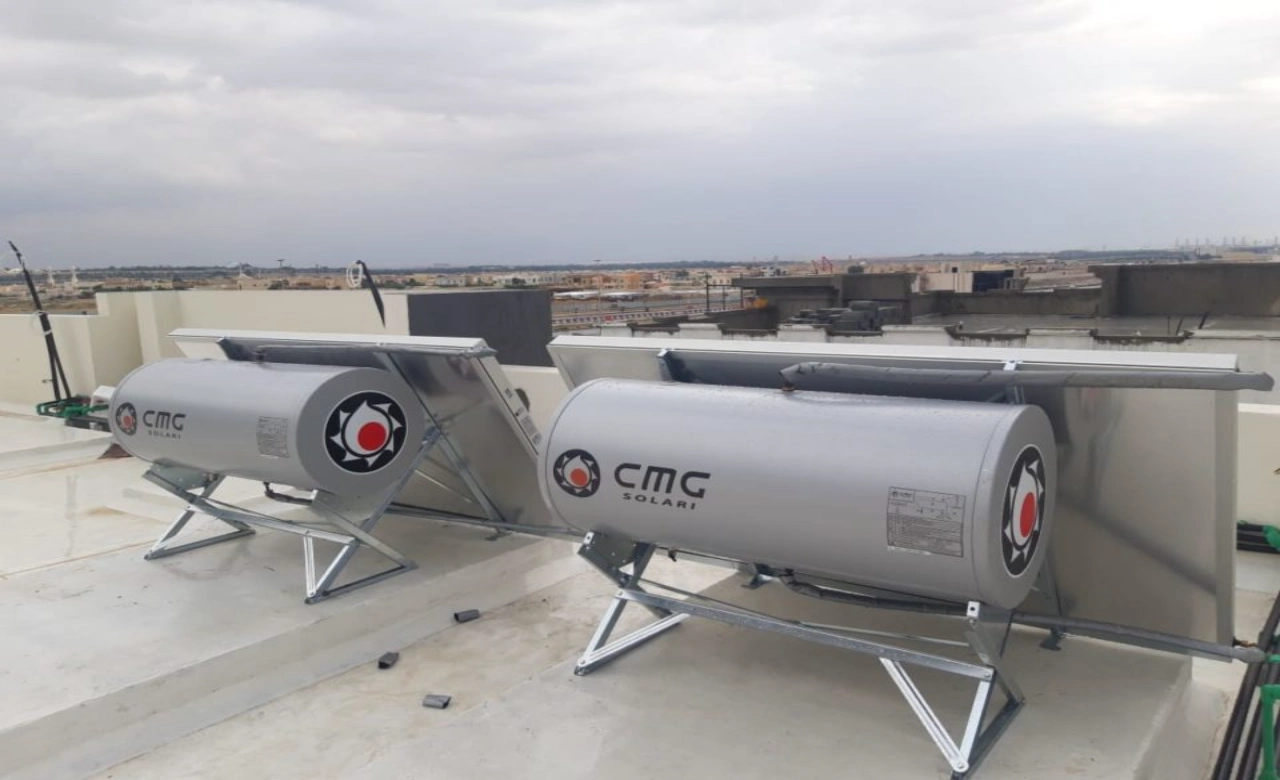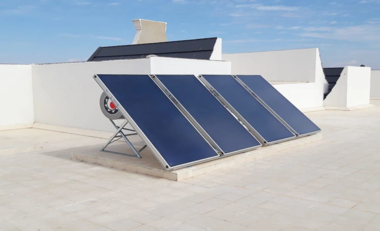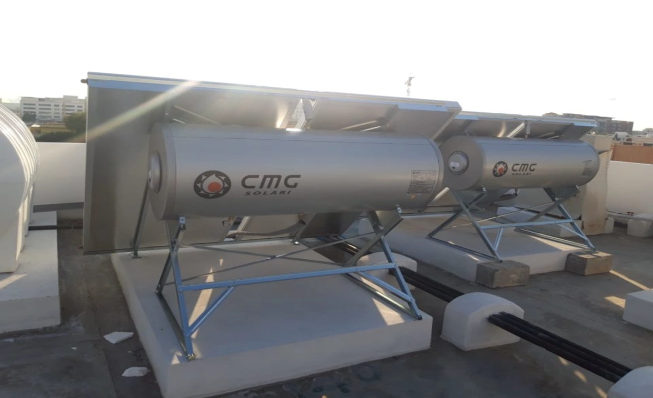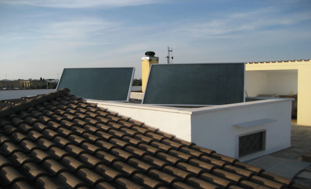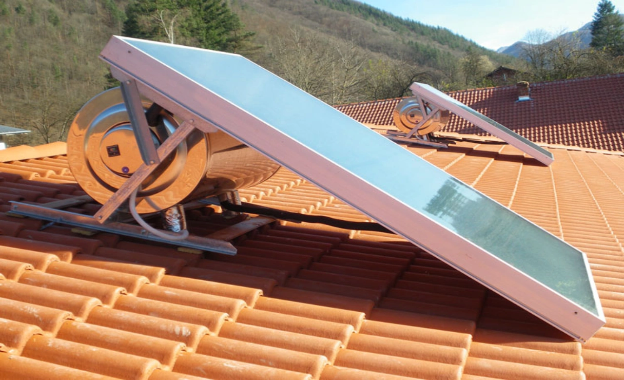 The fluid contained in the circuit evaporates thanks to solar radiation and reaches, in its gaseous state, the heat exchanger, where it releases its energy in the form of latent condensation heat. In the exchanger, therefore, the heat-carrying fluid condenses to return to its liquid phase and, by simple law of gravity, re-descends into the lower part of the collector where it will be reheated by the sun to start a new cycle again. At night, the heat transfer fluid returns into liquid form, occupying the lower part of the manifold thus preventing the inverse cycle from starting.